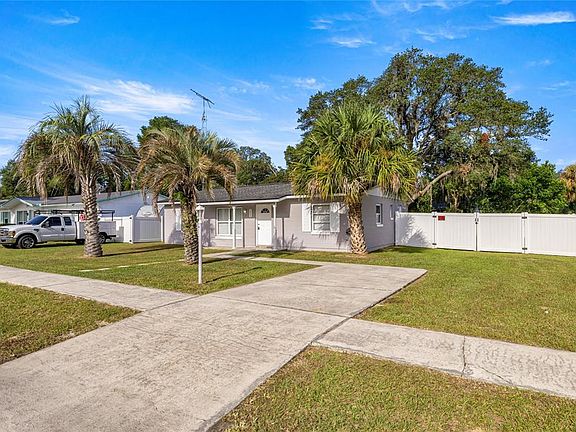 Welcome to your perfect starter home located in the thriving community of Marion Oaks. Short distance from Hwy 484 and I-75, local amenities, schools, medical, shopping, and dining. Featuring; 2 Bed/2 Bath Block Home, open split floor plan, tile flooring throughout, inside laundry room, covered screened-in lanai, and fenced backyard. Master bedroom includes a full bath and custom walk-in closet. Updated kitchen offers; granite countertops and stainless steel appliances. Updated bathrooms showcase; tiled showers, new vanities, and fixtures. Upgrades include; Roof 2017, Propane Tank 2019, Water Heater 2021, Plumbing & Electrical 2021, Flooring 2022, and Vinyl Fence 2024. Freshly painted interior and exterior! Your cozy nest is waiting. Schedule a viewing today and make this your home to cherish for years to come. NO HOA, NO Flood Zone!
