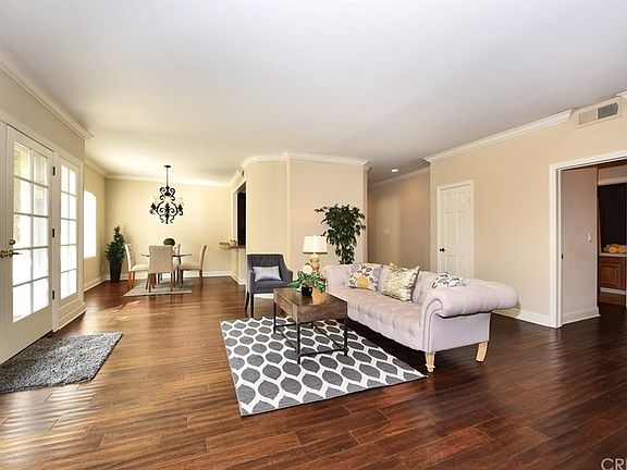 Stunning bright corner Unit South of Ventura Blvd on a beautiful tree lined street.Dream a little Dreamâ¦. Overlooking a serene brick interior courtyard, this stunning 2 bed 2 bath 1,285 sf condo is waiting just for you. Bonus den off formal living room with fireplace and French doors leading out to patio. Cooks kitchen with trey ceiling, designer backsplash, granite countertops and breakfast bar overlooking the formal dining room where you can entertain family and friends in style. Master Suite with large, walk-in closet, coved ceilings and master bath with step in shower. Second bedroom has ample mirrored closet. Stackable laundry in unit. Completely remodeled with gorgeous crown moulding and rich, dark hardwood floors throughout. Welcome home!