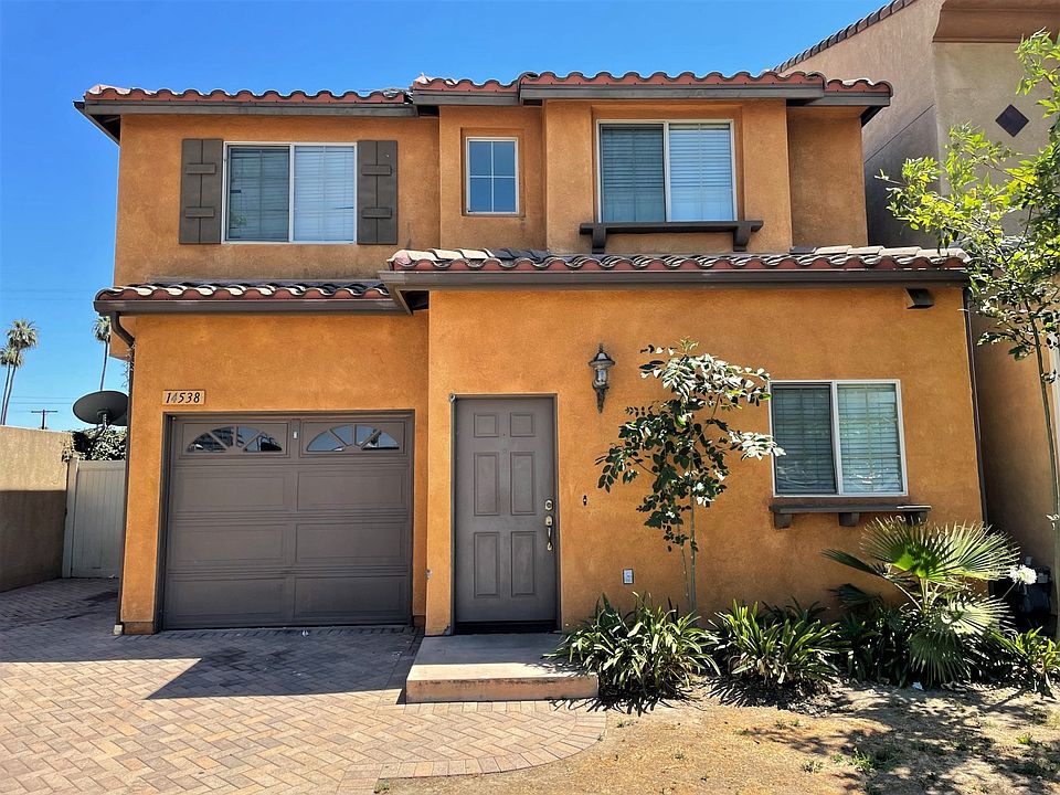 A charming 1,252-sqft two-story home tucked into the heart of Van Nuys! With a neat and welcoming exterior leading inside, enjoy a bright setting with blonde tone laminate flooring, well-sized windows, and recessed lights to enhance the spacious ambiance. The warm tone of the kitchen includes honey colored built-in cabinetry adorned with smokey granite countertops and equipped with built-in stainless-steel appliances. The living room is a delightful space for entertaining and includes sliding door access out to a quaint patio space that's perfect for basking in evening air of a warm summer's night. Back inside, each of the bedrooms are provided with ample built-in closet storage, center ceiling fans, and the same blonde laminate flooring found in the common rooms as well. The main bathrooms feature nice-sized vanities with granite countertops plus shower/tub combinations. Additionally, this come is complete with an attached single care garage and a good-sized driveway. Located down the street from Van Nuys High School, Crunch Fitness, Van Nuys Recreation Center, and nearby plenty of local establishments, markets, stores, and so much more in the bustling city!