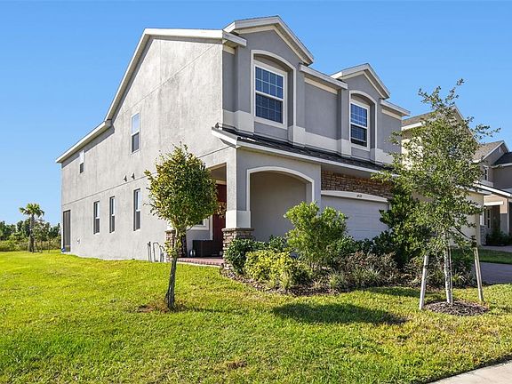 This 5-bedroom, 2.5-bath offers the perfect blend of privacy, and modern convenience. Definitely a perfect location for any one who wishes to revel in the great outdoors! It is a newer Landsea Vero Smart Home situated on a corner lot with no rear neighbors, ready for a pool, and is absolutely ONE OF A KIND!! Since only May this year the owners moved in and planned on living here for many years to come. So, they did not hold back on anything. From the beautiful stone accents on the exterior of the residence, to entering the open living area that boasts a gorgeous custom stone fireplace and mantle, wall accents, custom light fixtures, and fans. Enjoy the sealed porcelain tile plank flooring throughout the first floor, and everything was professionally painted with Sherwin Williams Agreeable Gray. Expect only the best in your Chef's Kitchen that offers upgraded pendant lights, quartz counters and a large quartz island with plenty of room to sit and enjoy your time with each other.. Check out the additional kitchen pantry to store your small appliances. All new stainless appliances stay in the kitchen. The owner added cabinets in the laundry room, screened in the lanai, and and the thoughtfully designed 2 car garage offering tons of extra ceiling storage, 220V outlet, along with the 220V wiring ready for up to 2 Tesla charging stations. As you head upstairs you will be in awe of the decorative iron railing leading to a spacious loft. The Primary Suite is one of the largest you will ever see. It is a large Bedroom with an additional 11X11 space. This additional space could be a nursery, work area, place to exercise, you choose! Large Walk-In Closet along with a double quartz vanity and extra large shower where you will surely enjoy your 2 shower heads since 1 is an oversized overhead rain shower. Additionally upstairs are 3 oversized bedrooms and another bath with a double quartz vanity. The community offers access to a resort-style pool, playground and is a haven for all to enjoy boating, biking, hiking, fishing, camping and more right across the street. Louisa State Park has many opportunities for endless adventures. Just minutes away, you’ll also find Clermont’s charming downtown, filled with local dining, boutique shopping, weekly farmers’ markets, and events that bring neighbors together. To the north, the highly anticipated Olympus Sports Complex is under development. Olympus is to uniquely combine health, wellness, fitness, sports, hospitality and entertainment into one complete community and global destination all right in your own backyard. As you can clearly see, Ridgeview is not just a place to live; it's a lifestyle where you are sure to enjoy the rolling hills, the chain of lakes, Lake Louisa State Park, Downtown Clermont, Olympus Sports Complex while only 20 minutes from Disney and able to enjoy the Magic Kingdom Nightly Fireworks.