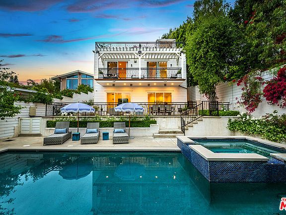 Stunning Gated Estate with Panoramic Views in Prime Sherman Oaks. Newly rebuilt in 2016 and located South of Ventura Blvd, this private 5-bed, 4.5-bath home about 5,000 sq ft of luxury living on a 12,558 sq ft lot. Bright and open with coffered ceilings, bamboo floors, built-in speakers, and great indoor-outdoor flow, perfect for entertaining. Enjoy two spacious living rooms (upstairs and down), formal and al fresco dining areas, and a chef's kitchen with granite counters, walk-in pantry, and high-end appliances. The primary suite features a fireplace, spa-like bath, and private balcony with stunning valley views. Upstairs includes 3 additional ensuite bedrooms plus a versatile 4th ideal as an office or guest room. The lower level is an entertainer's dream with a lounge, game room, wine fridge, high ceilings, and direct access to the pool, spa, and patio. A downstairs private 5th bedroom with ensuite is perfect for in-laws or teens. Top it off with a private rooftop deck offering 360 mountain and valley views, wet bar, and fridge, perfect for fireworks and sunsets. With a 3-car garage and extra driveway parking, app controlled outdoor security camera system, this move-in ready home combines style, space, and privacy in an unbeatable location.