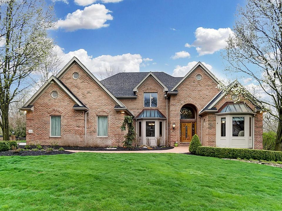 Custom quality is throughout this all brick home in Olentangy Schools. Plenty of room for everyone with over 5100 sq ft of living space. The first floor has mostly hardwood floors that lead to the great room with wall of windows and gas log fireplace. The gourmet kitchen has newer stainless appliances, custom built cabinets with pull-outs, and a sunroom to enjoy the view. The first floor primary suite has vaulted ceilings and a spa-like bath. Upstairs, there's another den, and two bedrooms with a shared bath. In the walkout basement with daylight windows, there's another bedroom and full bath with sauna, in addition to a kitchenette and two rec rooms with another fireplace. In the private back yard, you'll find a massive maintenance free deck in addition to the brick patio. Must see!