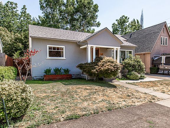 Adorable updated bungalow located 5 blocks from the University of Oregon, a short walk to Hayward field and Matthew Night Arena, this home is filled with vintage charm and modern amenities! This home features original hardwood flooring, coved ceilings, a cozy decorative fireplace, large picture windows, heat pump and A/C and lots of natural lighting. In the kitchen you will find gas appliances, a cook island, open kitchen and dining combo with pantry area, indoor laundry and deck access. There are updated bathrooms, with skylight, storage and new fixtures. Outside you will find a well maintained yard, deck, and additional living area/flex room with a loft big enough for a queen bed and bathroom for guests. This home is move in ready and waiting for you! Open House Saturday 8/3/24 from 11-1!