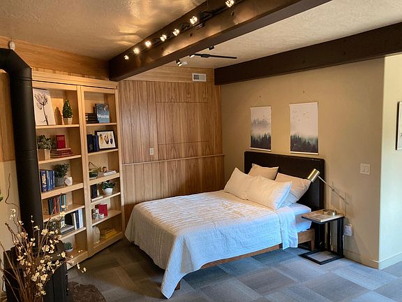 This furnished studio apartment is just a 5 minute drive to St. Luke's Hospital in downtown Boise. The kitchen is fully equipped including a microwave, full-sized refrigerator, electric stovetop, and French coffee press. High-speed WiFi and all utilities included. Comfortable queen bed. One driveway parking spot included; additional street parking is available. This is the lower unit of a duplex. Laundry not available. There are beautiful hiking and biking trails right out the front door, no drive required (Quarry Trail, Table Rock, Shaw Mountain Road). All furnishings and utilities included. Lease length minimum 90 days. No smoking. Includes one driveway parking space. Walk through video available on request.