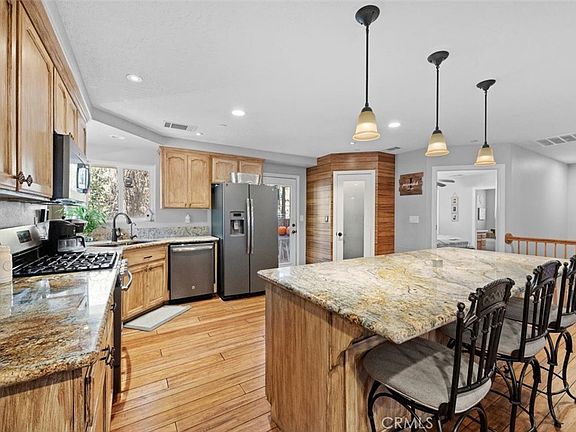 Fantastic move in ready home located only minutes from downtown Wrightwood! This beautiful home features 2 Bedrooms PLUS an office and 3 Bathrooms! 1853 SqFt home on a 5,000 SqFt Lot with a vinyl fenced yard, spacious backyard area with play set and concrete pad in the back. The Main bedrooms are located on the first level with access to main level living! Perfect for someone who needs single level living! The open floor plan between the kitchen and living room showcases the beautiful kitchen with updated counters, plenty of cabinet space and stunning  floors! Off the kitchen is a private balcony and gas line for your BBQ! The bathrooms have been updated to stunning travertine making each bathroom feel like a spa oasis! Additional features included an attached 2 car garage with storage racks, newer water heater, all appliances to remain. Don’t miss out on owning this fantastic home! Being only minutes away from the famous Mountain High Ski Resort, and close to downtown shops and restaurants this property is a great full time of part time residence! Schedule your showing today!