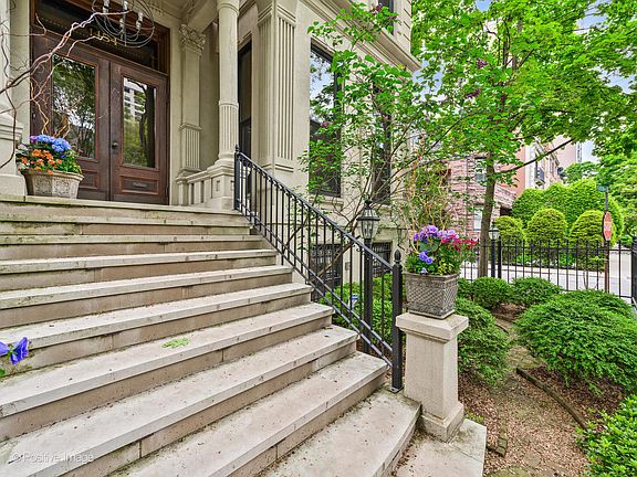 Listed on The National Register of Historic Places, this exceptional Gold Coast property sits on an extra wide & deep 30 X 150 corner lot and comprises a four story 11,000 square foot brick and masonry mansion. Honoring its magnificent heritage, this home underwent an extensive two year gut renovation now boasting six bedrooms/four and one half bathrooms, a gourmet chef's kitchen, elevated living spaces, an elevator, wine cellar, English garden and two incredible roof terraces. Each of the rooms on the first floor have 14' tinted and gilded plaster ceilings, custom wood flooring & exceptional woodwork.The gourmet chef's kitchen features custom cabinetry, Sub Zero, Wolf and Miele appliances, glass wall to wall subway tile, iconic custom black & white checkered stone flooring, marble countertops, beverage coolers and a large walk in pantry. The kitchen was expanded & opened up to offer a light filled solarium/breakfast room overlooking the English garden. A massive entry foyer is adorned with custom lighting, wall coverings, flooring, and is the perfect place to welcome guests and display art. The first of two formal living spaces features a stunning fireplace, bay windows overlooking Dearborn street, plaster gilded ceilings and incomparable millwork. The living room flows seamlessly to a stunning family room with an original Eastlake styled mantle over a gas fireplace. Flanking the mantle are floor to ceiling bookcases and a five windowed bay overlooking Burton Street.The formal dining room adjoins the expansive kitchen, while a second gallery provides access. to the spectacular staircase, elevator and powder room. Two staircases provide access to the second level with four gracious bedrooms and two fully updated bathrooms. The primary suite occupies the northeast corner of the home, with tree top views along both Dearborn and Burton. Expanded in the renovation, the primary now offers gracious sleeping quarters, a large dressing room, a large walk-in closet and the convenience of secondary laundry in the suite. The light filled primary bath is outfitted with classic marble flooring, Lefroy Brooks plumbing fixtures, Ann Sachs tile, dual vanities, a large soaking tub and spacious steam shower. The guest bedrooms are all outfitted w/wall coverings, ornamental lighting, and all doors and original brass hardware have been restored to reflect the Historic elegance of the home. 12' ceilings throughout the second and third levels of the home. Grandeur continues on the third level with an additional level of practical living spaces including a huge family room with a wet bar, play room, a guest bedroom with a jack & jill bath, a sixth bedroom, currently outfitted as an office. The sixth bedroom leads to another lovely outdoor space. The light-filled fourth level offers & incredible atrium ceiling and large roof terrace-accessible also via elevator-with living and dining space and incredible 360 views of the skyline and lake to the east. The finished lower level offers a mud room outfitted with. custom built ins with access to the garden from the garage. Multiple storage rooms, a white stone bathroom, large laundry room and another stunning recreation room & climate controlled wine cellar complete the lower level. The elegance continues outdoors with a landscaped English garden that leads to an extra wide two car garage. The garage includes an updated 1bed/1bath coach house & side driveway along Burton Street. Too many upgrades and details to list including a slate mansard roof, replaced and replicated Marvin windows, renovated copper water service, electrical service, updated AV, three zoned heating & Air Conditioning. All steps from the Lake on one of the most magnificent tree lined streets in the Gold Coast.