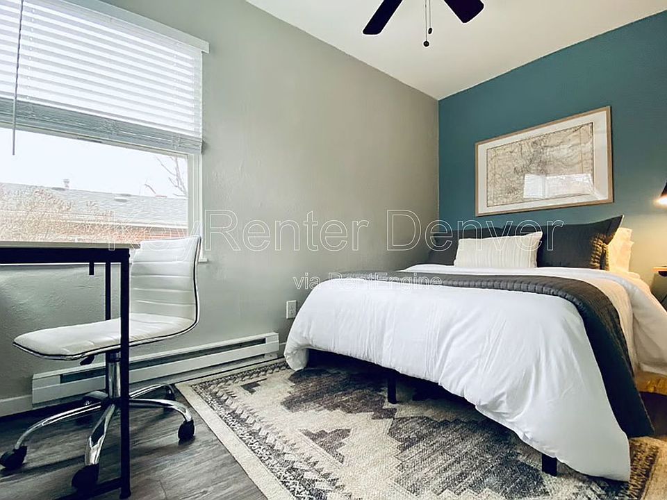 This cozy upper level apartment sits within a quiet four unit building, with each residence offering its own private entrance and dedicated off-street parking space. The home comes fully furnished and features two bedrooms, one bathroom, a well equipped kitchen, dishwasher, and an inviting living and dining area. You'll also enjoy the convenience of an in-unit washer and dryer and access to a fully fenced backyard, shared among all four apartments