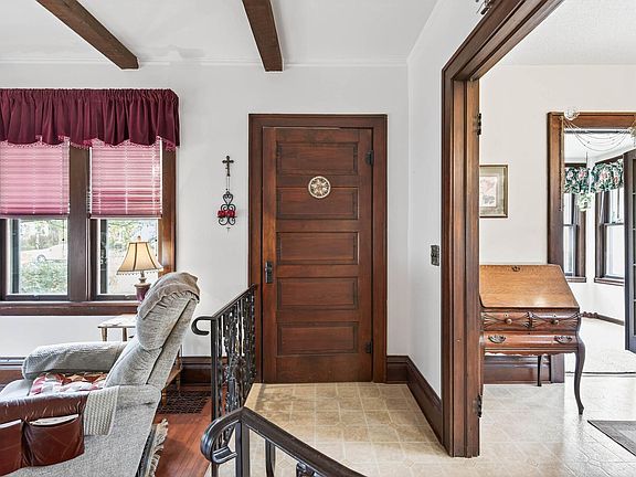 One-car detached garageOriginal woodworkInviting spacesEnclosed front porchKitchen cabinetryCozy upper-level bedroomLovely lot