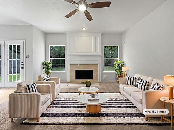 Welcome to this beautifully updated home. The living room features a cozy fireplace and a neutral color paint scheme, providing a warm and inviting atmosphere. The kitchen is a chef's dream with all stainless steel appliances, an accent backsplash. The primary bedroom boasts a spacious walk-in closet and an en-suite bathroom with double sinks, a separate tub, and shower for a spa-like experience. Fresh interior paint and partial flooring replacement add a touch of modernity. The fenced-in backyard with a patio is perfect for outdoor relaxation. This home is a must-see! This home has been virtually staged to illustrate its potential.. Included 100-Day Home Warranty with buyer activation