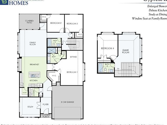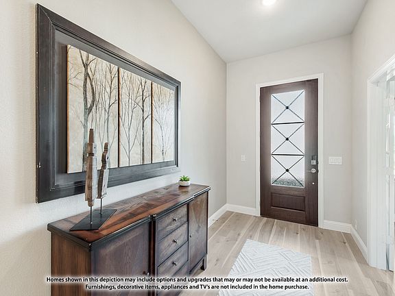 NEW! NEVER LIVED IN. Estimated completion March 2026. Bloomfield Homes presents the Cypress II, a two-story home with 4 bedrooms, 3 baths, living spaces on both floors, and a fully finished homesite with a fenced yard and fresh sod! Primary + 2 secondary bedrooms are on downstairs; Upstairs holds a game room, an additional bedroom, and a full bath. Opening directly to both the family room and dining area, the Deluxe Kitchen is equipped with quartz countertops, custom cabinetry with upgraded storage, added under-cabinet and pendant lights, a wood vent hood, fully-wrapped island, and built-in stainless steel appliances including a gas cooktop! Laminate wood flooring runs through the main living areas, and a study with glass French doors sits off the foyer, flexible enough to use as a formal dining if desired! The primary suite has been upgraded to an enlarged shower bath with quartz countertops. It also has a large window seat, bump out seating area, and a large walk-in closet sized for everyday storage. Practical features are already in place, including 2-inch faux wood blinds, a tankless water heater, and hardware on cabinets. a contemporary brushed nickel fixtures package, under-stair storage, and a laundry room with a linen closet. Outside, the home is finished with a brick and stone exterior, exterior uplighting, full gutters, an 8' wood multi-lite front door, and a covered rear patio with a gas drop in the back! Bloomfield Homes at Creekview Meadows is open daily - stop by to learn more!