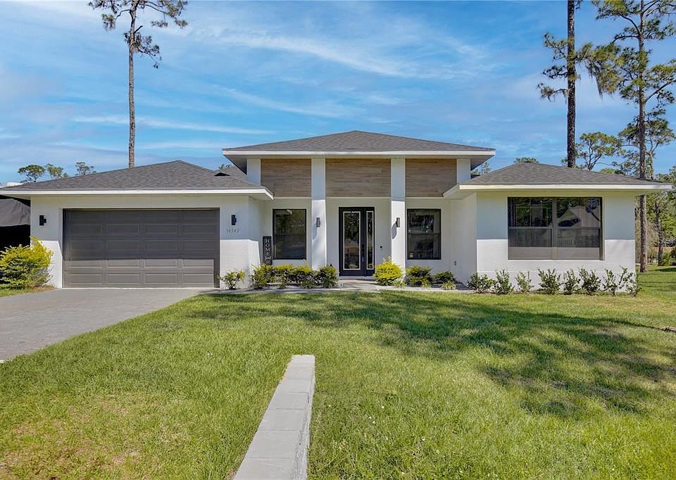 Discover your dream home where elegance meets lakeside living in a beautifully designed space. As you arrive, the paver driveway, two car garage, and eye-catching curb appeal set the tone for the beauty that awaits within. A welcoming foyer greets you, complete with a custom accent wall and a concealed storage room, playroom or office behind a sliding barn door. Step into the heart of the home and find yourself in a gorgeous open living space embodying modern design with sleek tile floors, tall ceilings, and tasteful neutral colors. The kitchen is a culinary enthusiast's dream, featuring state-of-the-art stainless-steel appliances including a touch screen refrigerator and built-in microwave, set against a backdrop of sleek two-tone minimalist cabinetry, chic herringbone backsplash, bar top seating, and a pantry closet. Entertaining is a breeze in the living room, where tray ceilings with recessed lights complement a custom TV wall with a floating mantle above a recessed electric fireplace. Sliding glass doors lead to the enclosed patio, perfect for pets and enjoying the Florida sunshine. Host memorable dinner parties with craft cocktails in the dining room, where a Sputnik chandelier shines above a custom-built bar with a glass rack and wine cooler. Retreat to the primary suite for relaxation, featuring his and hers walk-in closets and a spa-like bath showcasing a shower equipped with a rainfall head, body sprayer, and bench seating. Three additional guest bedrooms are airy and welcoming, while two modern guest bathrooms cater to convenience and style. Outside, the large, enclosed paver patio overlooks the fire pit and custom pool with a tanning ledge and cascading water fountain features, enclosed by a safety fence. The expansive yard has space for boat parking, and the community offers an optional HOA which allows access to Lake Mary Jane with a boat ramp, fishing pier, playground, basketball court, and picnic pavilion with an outdoor grill. Just 15 minutes from the shopping and dining of Lake Nona while nestled among nature trails and outdoor activities, this home’s location offers the best of both worlds. Don’t miss out on the opportunity to make this your forever home. Call today to schedule a showing and experience lakeside living at its finest! Bedroom Closet Type: Walk-in Closet (Primary Bedroom).