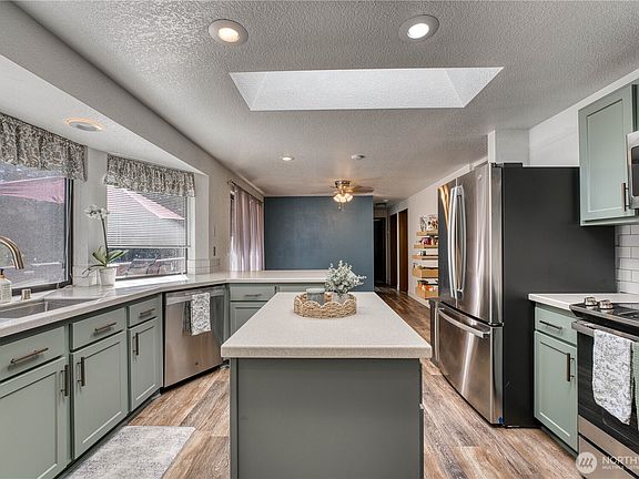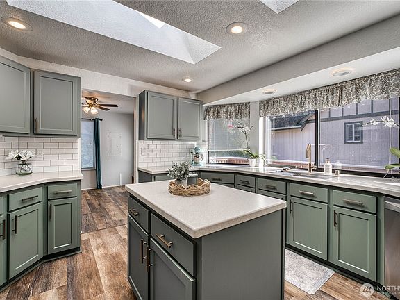 Stylish, affordable home with shop-sized garage and extensive upgrades since 2018—new roof, exterior paint, full kitchen remodel, flooring, bathrooms, custom closet, mini-split heat pump with A/C, composite deck, and back yard fenced. The new kitchen is exceptional, Corian countertops, soft close drawers and a closet pantry with pull out shelves. Located on a quiet dead-end street near Scenic Beach State Park with, peekaboo mountain views, and Hood Canal beach rights. Easy maintenance landscaping, most of the property is paved, so no weekends working on the lawn. Easy commute to shipyards and CK School District. Modular construction meets or exceeds all county building codes, offering superior quality over manufactured homes.