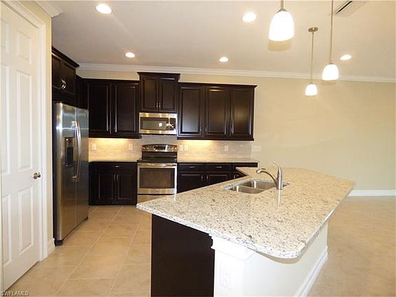 Beautiful and New Single Story single family home, featuring 3 BR 2 Bath with a 2 Car Garage and covered Lanai. This open, and functional floor plan boasts multiple luxurious appointments for your comfort and enjoyment in a neutral décor. In the kitchen stainless steel appliances, 42" Espresso cabinets, walk in pantry, and granite tops included throughout the home with tile in a subway pattern in all social areas and carpet in the bedrooms. Eight foot doors with many windows for a light and bright ambiance. All this in a centrally located and gated north Naples community.