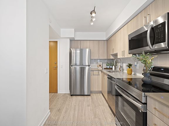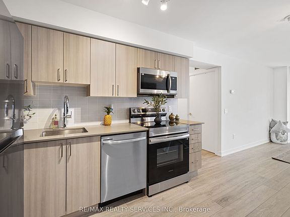 Rare Find in Pickering! This 1 + den condo comes with both parking and a locker, making it a standout opportunity. Enjoy a practical open layout with laminate flooring throughout, plus lake views right from your unit. The large balcony offers a perfect spot to unwind and enjoy your morning coffee - or to entertain. Just a 2-minute walk to Pickering GO and Pickering Town Centre, this location can't be beat! Building amenities include a 24-hr concierge, rooftop pool, gym with yoga studio, party & games rooms, guest suite, BBQ area, and landscaped outdoor spaces. Internet & heat are included in condo fees. Perfect for first-time buyers or investors looking for modern living with convenience at your doorstep