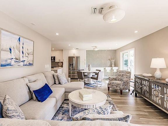 Dazzling coastal gem with modern designer finishes, perfectly poised in an ideal location, just a mile+ to downtown 5th Ave.! Exquisitely and newly rebuilt from floor to ceiling in 2023. Stylish accents include; all tile flooring throughout, full wall backsplash, marble style kitchen counters, white cabinetry, spa-like showers, custom wall-to-wall closet in primary bedroom. Nearby is fine dining, shopping, dancing, luxury resorts, Naples famed white sand beaches! Just a short stroll or scenic bike ride to the marina, Tin City, Bayfront restaurants or multiple parks. Beach lovers will revel in the coastal lifestyle with year-round Florida sunshine and breathtaking sunsets. Boaters will have direct access to the Gulf from your boat dock included. Investors, opportunity knocks in this coveted 34102 sweet spot. Single story, desirable open concept floor plan with breakfast bar. Laundry area contains full size washer and dryer. 2 assigned parking spaces. New appliances. New impact resistant windows. Slider door from main area leads to the private patio for tranquil living whether outdoors or in. Revel in the quintessential Naples lifestyle that many dream of, and don't miss this unique property which has it all!