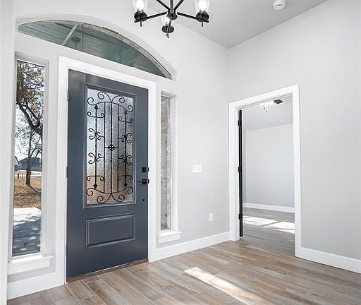 Outside, enjoy a large lot with mature trees, a covered back porch with wood-burning fireplace, and a peaceful setting with plenty of room to play. Additional features include a 3-car garage, mud bench, inside utility room, interior safe room, aerobic system, high-speed internet access, and all the energy-efficient benefits of new construction.