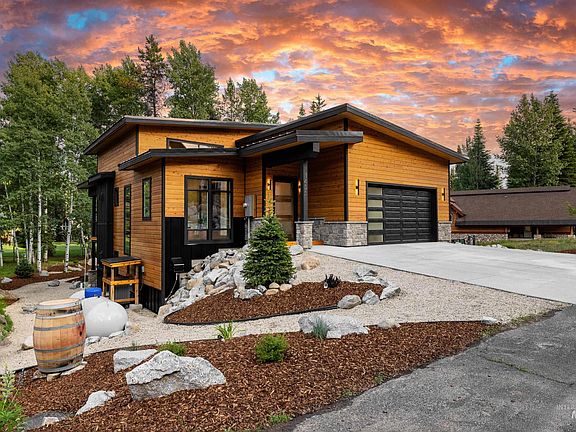 New Construction build move-in ready! This custom contemporary home on Birch #2 of the McCall City Golf Course combines comfort, style, and rustic charm. Nestled on a private lane in downtown McCall, enjoy easy access to the vibrant community. Constructed with Insulated Concrete Forms (ICF), ensures top-notch energy efficiency and sound insulation. The exterior features rough-sawn cedar & doug fir siding, complemented by upper/lower covered living spaces offering stunning golf course views. Inside, modern luxury meets rustic elegance with knotty alder accents throughout, creating a warm ambiance. The primary bathroom includes heated flooring for a spa-like feel. Discover a thoughtfully designed kitchen, home office, open living area, and ample storage. Additional $30k in landscaping is completed and enhances the timeless appeal. This home exemplifies thoughtful design and uncompromising quality!
