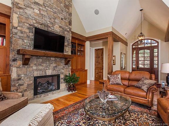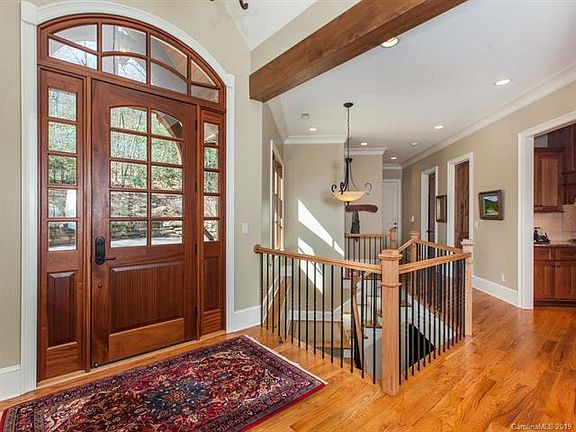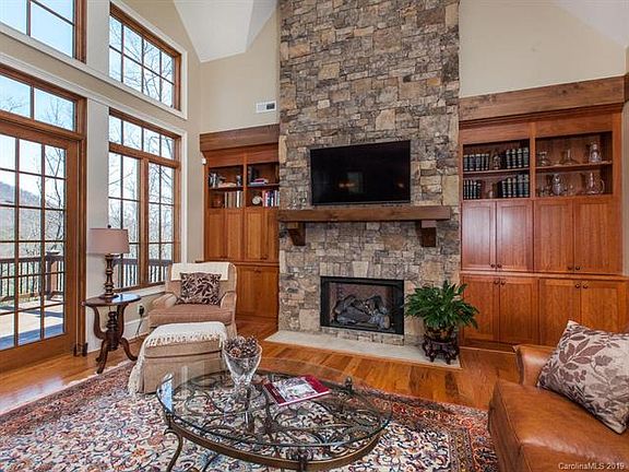 Comfortable luxury defines this lovely residence, featuring an open, light-filled floor plan with stone fireplaces, hardwood floors, custom built-ins, and vaulted timber ceilings. The home achieves unparalleled privacy as it blends seamlessly into its wooded mountain site, cozied up to the Pisgah National Forest, peacefully harmonizing nature with all the creature comforts you expect. The living room, dining room, kitchen, and master suite are on the main level, with smooth transitions to screened terraces. The largest terrace captures cool mountain breezes and provides for gracious entertaining, indoors and out. The master suite features a screened terrace affording all the serene beauty one could desire.