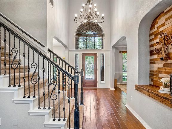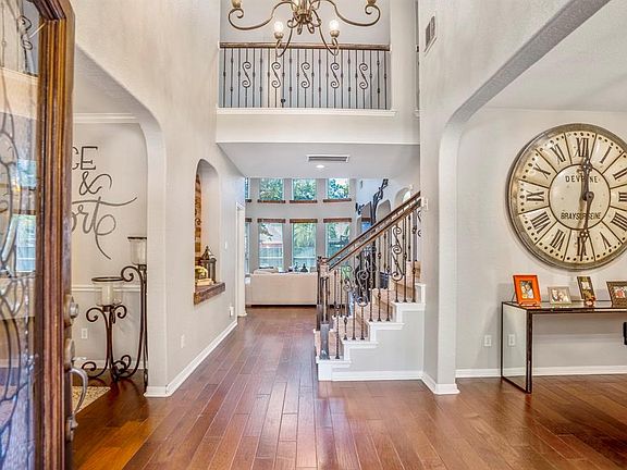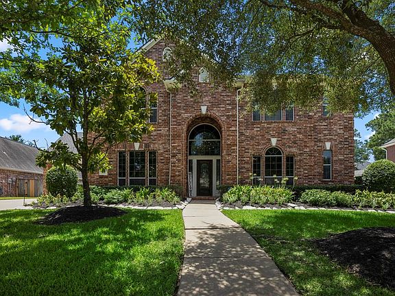 Beautiful traditional low-maintenance brick home in the sought-after Manor section of Gleannloch Farms. 3 car garage plus porte-cochère with lots of extra parking. Lead glass mahogany door leads to 2-story foyer with custom lighting, beautiful hardwood floors throughout, formal dining with gorgeous custom chandelier, formal den/study, two-story living room with wall of windows and a stacked stone fireplace with gas logs, spacious island kitchen with farmhouse sink, five-burner gas range, single oven, quartz countertops, updated lighting & backsplash & wine rack, an abundance of cabinetry. Primary suite with French doors leads to en-suite with whirlpool tub, dual vanities & separate shower. Intricate wrought iron staircase leads to large game room, spacious secondary bedroom & 2 full bathrooms. Expansive backyard with plenty of room for a pool. Amenities include: 3 pools & splash pad, tennis courts, lakes, dog park, equestrian center, trails & 27 hole Gleannloch Pines golf course.