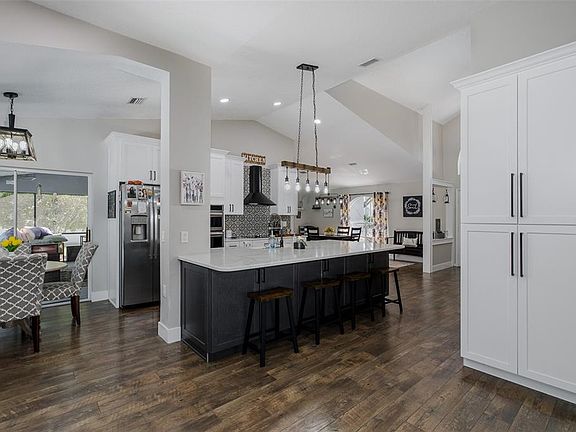 Modern finishesPrivate officeQuartz center islandLight and bright luxuryThoughtful updatesSparkling poolScreened enclosure