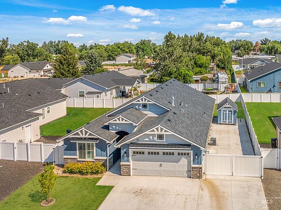 If you’ve been dreaming of a slower pace, knowing your neighbors, and settling into the rhythm of small-town Idaho, welcome! Just minutes from the Snake River and a short stroll to the high school, this single-level home offers the perfect blend of convenience, space, and style. With 3 bedrooms plus a dedicated office (or optional 4th bedroom), this home was thoughtfully designed for both function & flexibility. Inside, you'll find vaulted ceilings, upgraded flooring, granite countertops & a full stainless steel appliance package—all the high-end finishes you'd expect, without the city price tag. Cozy up around the gas fireplace or head outside to the covered back patio where there's plenty of room to run, garden, or just enjoy the quiet of rural life. Need extra space for toys or tools? There's an oversized driveway, dedicated RV parking with hookups & storage shed. This isn’t your average production build, it’s a turnkey retreat with all the perks of newer construction and none of the maintenance headaches.