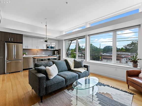 This modern & energy efficient condo is ideally located in the middle of Portland's hottest Eastside districts! Sleek features & finishes include floor-to-ceiling windows, high ceilings, bamboo floors, quartz counters, stainless appliances, in-unit laundry, AC & ample built-in storage. Located on MAX & Bus line, or enjoy deeded parking. Close to New Seasons, parks, & all the fun on Alberta, Williams & Mississippi. LOW property taxes = LOW monthly payments! HOA covers sewer, water & trash.