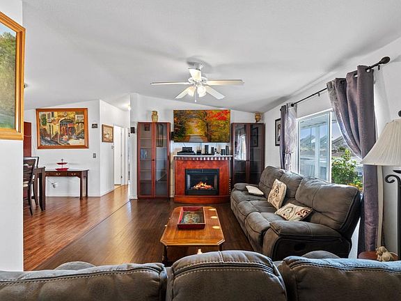 Wonderful 3bed and 2bath Manufactured Home in a Friendly All Ages Park is ready for a New Family! This cozy property with an inviting living room and dining area is perfect for entertaining your guests. Airy and abundant natural light throughout. Enjoy the breathtaking views from the comfort of your Porch. Newer Laminate flooring. The low maintenance yard, with potted plants and palm trees for your E&R! Enjoy the perks of this quiet community amenities such as Pool, laundry facilities, Basketball Courts, Playground and the list goes on! This property is perfectly located near parks, shopping, dining, minutes from Freeway 15 and 76, and the many activities beautiful Fallbrook has to offer!
