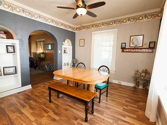 This charming home is full of surprises! A spacious enclosed front porch is a wonderful space for your guests to enter. There is also a bonus room perfect for kids toys or a small office area. The living room has hardwood floors and a fireplace for those chilly evenings. Need to host family dinners? The dining room in this home is perfect! Plenty of space, built in shelves and lots of natural light. The kitchen has updated cabinets, and a beautiful tiled backsplash. There are 2 bedrooms on the main floor, 1 with a walk in closet. The bathroom also has a tiled shower. In the lower level you will find a rec room, wet bar area, an additional bedroom and still plenty of storage along with the laundry area. The backyard yard is fenced and needs very little maintenance. Call today to get inside this home!