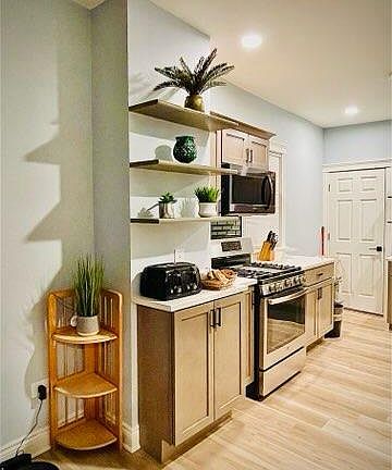 In unit washer dryerQuartz countertopsStainless steel appliances