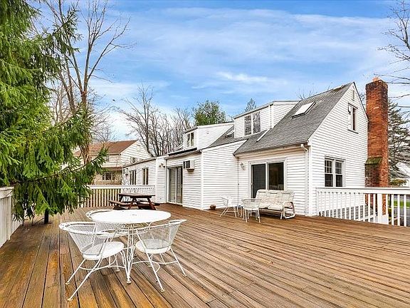 Bucolic views from the huge deck overlooking woods and small pond accessible by the kitchen or dining room. Recent Gas boiler and central air replacement. Oak floors in most of the expansive rooms of this deceivingly large home. Private cul-de sac offers loads of parking for your guests. This home is in overall move-in condition; just decorate to your liking!