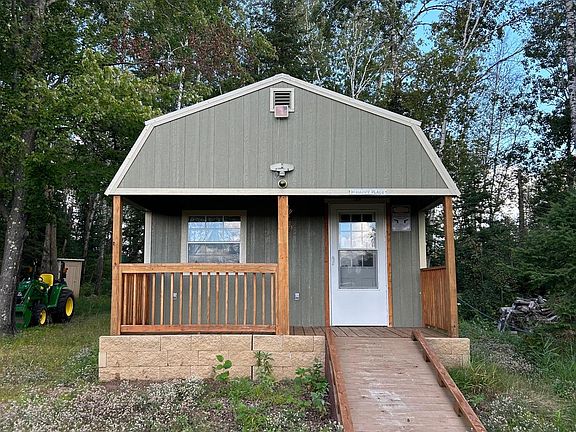 Beautiful prefab cabin with gated entrance on 40 acres of hunting land with hickory cabinets and countertops and nickel gap shiplap. This cabin is ready to go for hunting season or a nice quiet vacation up north, which includes appliances, furniture, portable toilet, two 27-gallon water tanks, charcoal grill, propane heater, full 100-gallon propane tank (propane on thermostat, window A/C unit, 200W electric generatior with solar panels (worth $2800), firepit, storage shed, and more! Electrical has been inspected and approved by state and insulation is R15. Trail behind the cabin leads to two deer stands on the edges of a meadow with a stream and food plot.