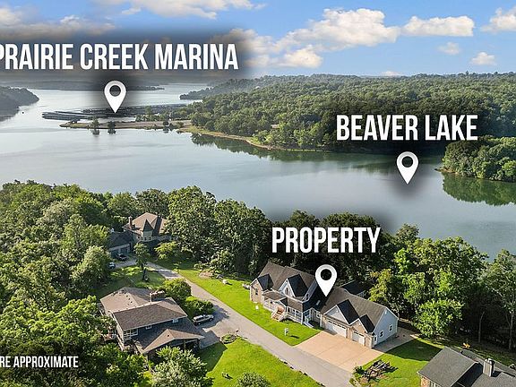Lakefront Luxury Awaits! This custom-built, one-owner home sits just minutes from Prairie Creek Marina and includes TWO boat slips on a private dock with Solar for electricity. Offering 3812 sq ft of lakefront living, 4 bed, 2.5-bath home features seasonal Beaver Lake views. Enjoy a spacious kitchen with a custom gas range, large island with bar seating, an additional large bonus room- currently used as a pool room of the kitchen and a large living room with a gas fireplace. The primary suite features gas fireplace, private deck access with a hot tub. Upstairs, a flexible space serves as a 4th bedroom or additional living/game room. This home comes with incredible extras, including a whole-house generator, a covered front porch, a 3-car oversized garage with a 4th bay, and a wraparound driveway. Minimal yard maintenance with a Corp line near the back means more time to relax and enjoy the lake. Don’t miss this rare opportunity to embrace the lake lifestyle—summer on Beaver Lake is just beginning!