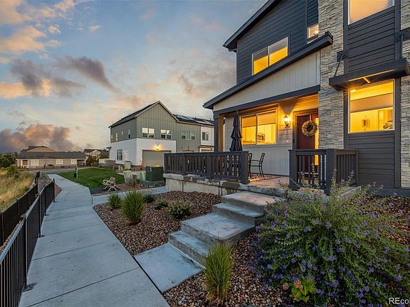 Enjoy peaceful strolls on nearby community walking trails or relax with a glass of wine while taking in breathtaking sunsets right from your front porch. Convenience is everywhere—Panorama Park, Stanley Lake, Candelas trails, food halls, coffee shops, gas station and King Soopers are just minutes away. Even DIA is only 32 minutes from your door!