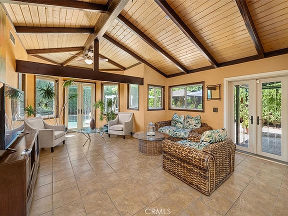 Welcome to this charming and meticulously maintained pool home in the heart of Sherman Oaks. As you step inside, you're greeted by a modern glass front door leading into a cozy kitchen with a charming breakfast nook. This inviting residence features two bedrooms and beautifully remodeled bathrooms. The open floor plan, bathed in natural light, highlights hardwood floors in the dining area and stylish tile in the living room. French doors and dual-pane windows enhance the space, while recessed lighting adds a touch of modern elegance. The expansive dining/living room area boasts a soaring cathedral ceiling with beamed details and a large brick fireplace, perfect for those cozy winter evenings. Multiple French doors open to the backyard, creating a seamless indoor-outdoor flow. The private backyard is an entertainer’s paradise, featuring a heated pebble tec pool, a covered barbecue area, and plenty of space for gatherings. Highlights include a paid Solar System, low-maintenance yard, dual-pane windows, and a 240V hook-up for your electric vehicle. Conveniently located near freeways and close to Ventura Boulevard. You'll enjoy easy access to fantastic restaurants, shopping, grocery stores and schools. Make this delightful home your own private oasis!