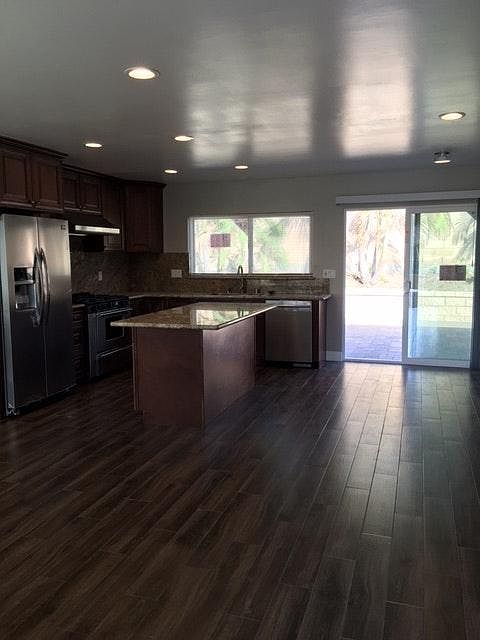 Convenient location. Walking distance to high school, park, and library. Close to freeway and shopping center. Beautifully remodeled home with paving stone landscape throughout; driveway, large front patio and spacious back yard. LED recessed lighting, switches, outlets, dual pane windows, fresh paint, tile flooring, A/C. Gourmet kitchen with granite counter tops and island. Stainless steel refrigerator, stainless steel sink, 36" stainless steel professional range with 6 gas cook tops, gas oven and stainless steel vent hood that vents outside. Baths are remodeled with granite counters and cabinets, tile surrounding tub, tile surrounding master shower. Epoxy garage flooring. Tenant is responsible to pay for trash, water, gas, and electric. No pets, non-smoking.