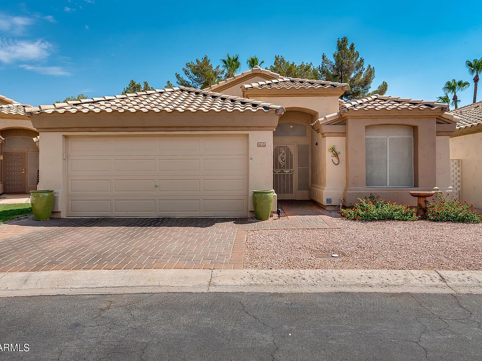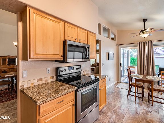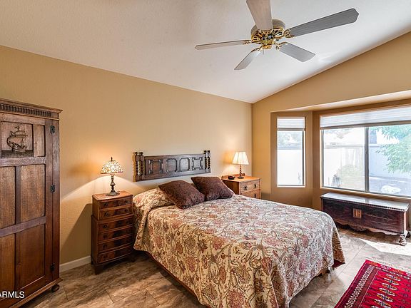 Upgraded Valencia - split bedroom floor plan with high ceilings & lots of natural light coming in from the wall of windows. Updated master bath (2021) Luxury Vinyl flooring (2020) New roof underlayment(2018) Ext Paint (2019) Updated kitchen cabinets, granite counters, stainless appliances. HVAC system (2016). RO system (2018) Master suite w/resurfaced cabinets has bay window, large walk in closet, walk in shower & double sink. Split second bedroom & full bath. Mini office area too! Extended tiled back patio w/block fenced private yard w/no neighbors behind you. Paver drive & walk. 2 car garage & built in cabinets. Zuni Village includes a separate swimming pool, clubhouse and front yard landscaping maintenance for Zuni Residents only.