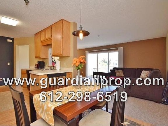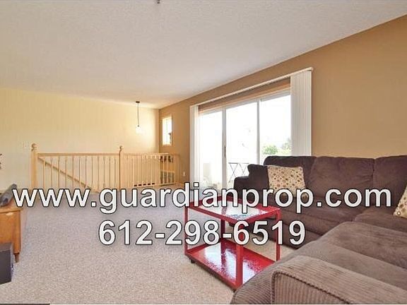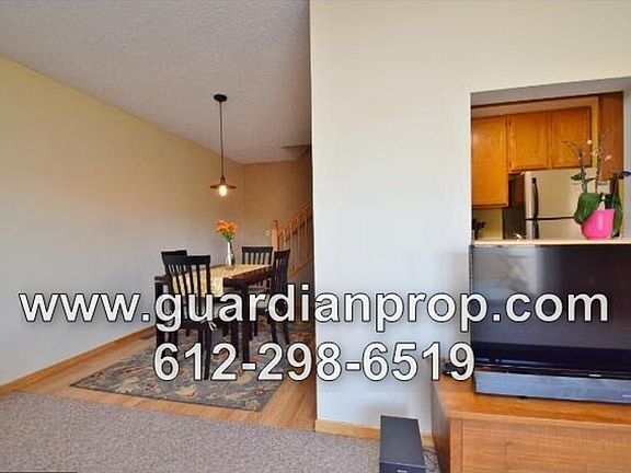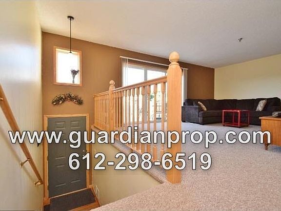 Rosemount townhouse available now. Open floor plan on the main level. Living room has a walkout to the large deck. The dining area is between the living room and kitchen. Black and stainless appliances including a microwave and dishwasher. There's also a half bathroom on the main level.