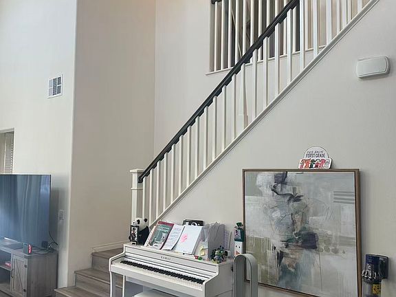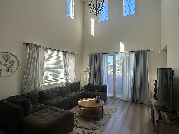 Gated community. 2 story high ceiling living room. Main floor Bedroom ensuite. Wood flooring throughout. Highly rated eastvale school, Washer, dryer and fridge included.