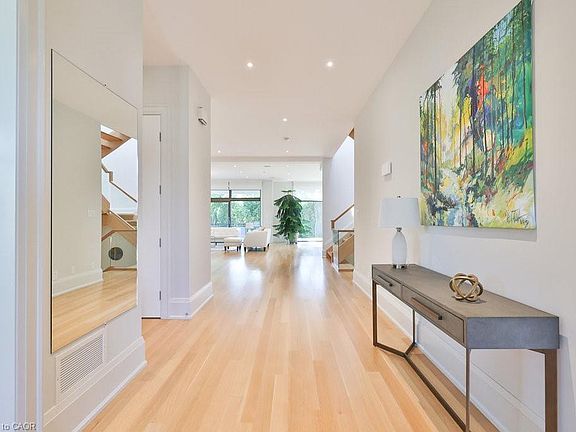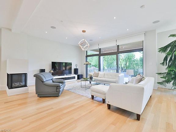 Discover this 2018 custom-built luxury home in the heart of Lakeview, offering over 5,700 sq. ft. of total living space with a finished walk-up basement. Designed for both elegance and comfort, the home is filled with natural light from expansive rear windows, generous skylight above the central staircase, highlighting the open layout with soaring 10-ft ceilings, striking 10-inch trim, and stunning quarter-cut hardwood floors.The chefs kitchen is a showstopper, featuring Miele appliances, Caesarstone Calacatta countertops, and a walk-in pantry with a sink, flowing seamlessly into the sunlit family room with gas fireplace. A main floor office and full bath add convenience and versatility.Upstairs, four spacious bedrooms and three full baths include a primary retreat with dual walk-in closets, spa-like 7-pc ensuite with hydronic heated floors, double shower, and Italian Catalano toilets throughout. A roughed-in second laundry room completes the upper level.The finished basement expands your living space with one bedroom and a den, full and half baths, a large recreation room, and a bar/kitchenette rough-in, all enhanced by natural light.Premium upgrades include European high-security doors, triple-pane tempered glass windows, a wired 360 security system, hydronic heated floors in the basement and primary bath, Generac 11kW standby gas generator. Outdoors, enjoy a private fenced yard, thermally modified wood decking, professional landscaping with Wi-Fi irrigation, and a polyaspartic-coated garage floor. Two furnaces one in the basement and one on the second floor. Behind the property, the former powerline corridor was dismantled years ago, to become a walking trail connecting to the new Lakeview waterfront development. A rare opportunity to own a home that blends timeless design, modern comfort, and a desirable location.