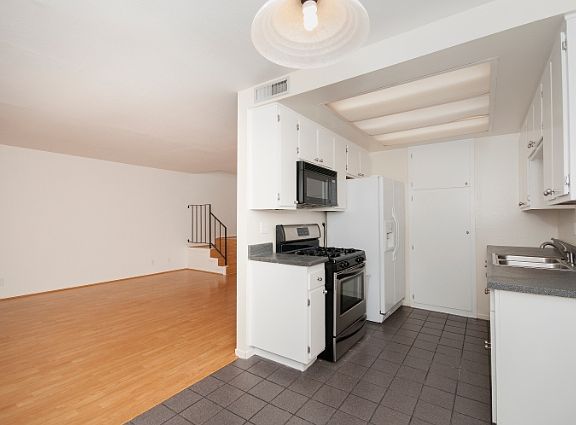 Perfect starter home with 2 bedrooms and 1.5 baths. This home is truly ready to move into. All appliances are included including refrigerator, washer, dryer and stainless steel stove and brand new microwave in the updated kitchen. There is easy care wood laminate flooring throughout the home. The entire property was just freshly painted. We have easy access to ample street parking for guests and a single car garage for you. IF you would like to see this home or any others in the area contact the listing agent Ken Stewart with Keller Williams 714-720-8980.