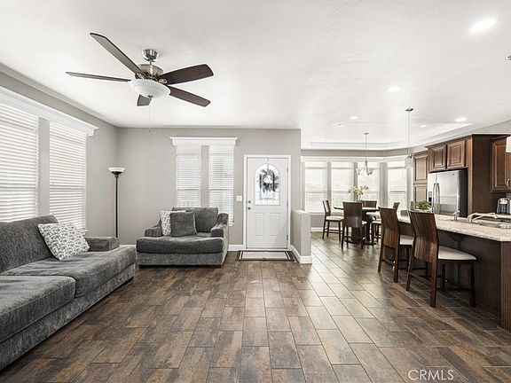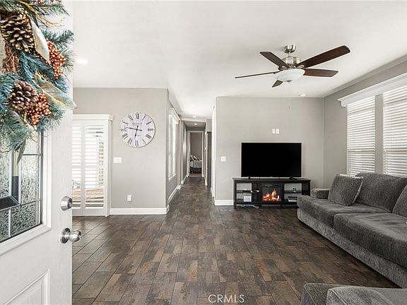 This beautifully designed 3-bedroom, 2-bathroom home boasts 1,602 sq. ft. of bright and open living space. The gourmet kitchen is a chef’s delight, featuring stainless steel appliances, elegant cabinetry, a stylish tile backsplash, recessed lighting, and a spacious island with pendant lighting—perfect for entertaining. The primary suite offers a tranquil retreat with a ceiling fan and wood shutters on the sliding door leading to the porch. The en-suite bathroom features dual sinks, a walk-in shower, and a spacious walk-in closet. Additional highlights include a well-appointed laundry room with ample storage, an extended driveway for two vehicles, and an outdoor storage shed for added convenience. Residents of Rancho Ontario enjoy an array of exceptional amenities, including a newly remodeled clubhouse, a heated pool, two spas, a dog park, tennis and pickleball courts, a billiards room, game tables, and a fitness center. Experience the perfect blend of comfort, convenience, and community—schedule your private showing today!