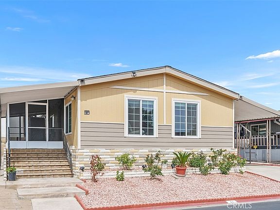 Beautiful 2-bedroom 2 bath mobile home located in the exclusive Rancho Ontario. This home offers tons of updated features including a tankless water heater, new furnace, newly remodeled kitchen and newly landscaped. Renovated amenities await you offering a heated pool and spa opened year-round, a hall to host any event, our clubhouse offers a billiards room, card table room, a fitness room as well as a gym or lounge area to just sit and relax. The Park also offers an active area with two pickleball courts, bocce ball and we didn't forget about your fur babies, two dog parks. Don't miss out on touring and calling it home.