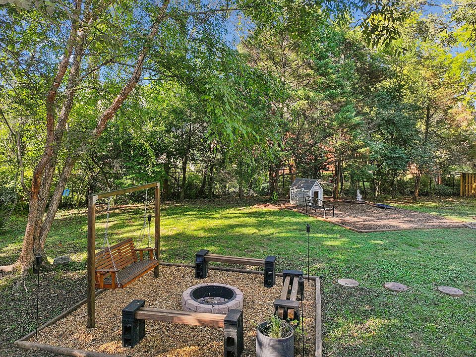 It features a serene park like yard with a CREEK at the back that includes a new FIRE PIT AREA, fresh landscaping and a large lot just shy of 1/2 acre. The newly fenced back yard is perfect for kids to play or dogs to enjoy. The inside has a WOOD burning fireplace, updated bathrooms and kitchen with QUARTZ countertops. Roof is only TWO years old. Downstairs this home has a dining room, living room and a large family room that walks out to the large back deck overlooking the back yard. Upstairs, you have four spacious bedrooms. The primary bedroom has two large closets and an on-suite bathroom. Also, in the primary is walk in attic space for all your storage needs. ****If buyer uses preferred lender "Southwest Funding", Kaylee Davis. They will receive a 1% lender credit to use on the purchase of this home to use toward a buy down on the rate or to use on closing costs*****