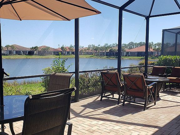 2 BR, 2 Bath plus large Den. Lots of upgrades with this home: Hurricane Impact Windows; Storm Smart Electric Screens; Plantation Shutters; Ceiling Fans; Closet Organizers; Outdoor Entertainment Center; Extended Lanai; Screened in Entry; Lake and Sunrise Views; Tile in Living Area; Cortec flooring in bedrooms; New Dishwasher and Hot Water Heater; 8' doors and crown moulding throughout. Community features a beautiful Clubhouse that contains a Gym, Fitness Studio, Theater, Card Room, Library and Cafe. Outside you have a lots of space to walk around the many beautiful lakes; a Dog Park, Pickleball Courts and brand new Bocce Courts. Quarterly HOA Dues = $1137