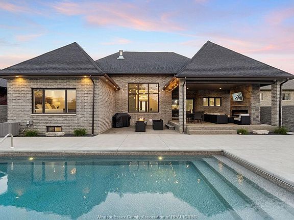 The backyard you have been dreaming of is finally here, and it comes with a custom home to match. This 6 year old 2445 sq ft. ranch is loaded with high end finishes, thoughtful design, and a floor plan made for both living and entertaining. Inside on the main floor ranch are 3 spacious bedrooms including a primary suite with a spa-like ensuite and walk-in closet, plus a versatile 200 ft bonus room above the garage. The chef’s kitchen with oversized island and walk-in pantry connects seamlessly to the dining and living areas, alongside main-floor laundry, mudroom, and multiple (3) bathrooms. The fully finished lower level is an entertainer’s oasis, featuring a large rec room area with sleek bar, wine library, 4th bathroom, and 2 oversized bedrooms. Outside is where this home truly shines: brand-new landscaping, vinyl fencing, sparkling inground pool, custom stone fireplace, and hardscaped entertaining areas all with no rear neighbours. Add in the oversized garage and covered deck, it is a one of a kind property that delivers luxury inside and out.
