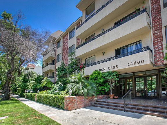 *Prestigious address south of the Blvd. walking distance to Sherman Oaks Village * 2 beds, 2 full baths, balcony with view * Double door entry to the unit, hardwood floor * Kitchen: New quartz counter top, breakfast nook open to balcony * Living room: fireplace with adjacent dining area, wet bar * Master bedroom: huge walk-in-closet. Master bathroom: double sink ,separate shower and tub * 2nd Bedroom: at opposite end of Master bedroom * Washer/Dryer in unit * Parking: attached garage 2 total parking spaces * Amenities: elevator, recessed lighting, pool, jacuzzi, sauna, large common patio and BBQ area * Pet Policy: Cat ok Owner pays for water and trash