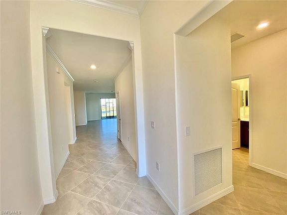 This new 2020-built Trevi model home offers 2,032 square feet of versatile living space featuring 4 bedrooms in a desirable split plan with 3 full baths. The Owner's suite offers a private retreat with two walk-in closets and bathroom with dual sinks and large spa shower. The spacious kitchen is open to both family and dining rooms, delivering the ideal for layout for socializing and entertaining. Enjoy the laid back Florida lifestyle and lake view from the covered lanai. Granite counters in the kitchen area and GE stainless steel appliances. Portico is a gated, master-planned residential community located in East Fort Myers. Developed by Lennar Homes, the neighborhood features a variety of home styles, a town center with resort-style amenities, and extensive lake and preserve views. Living at Portico is truly like being on vacation. there's state-of-the-art fitness center to keep your body fit and energized, the lakes to gaze upon to soothe the soul, the heated pool to frolic in or swim laps no matter the outside temperature, and the clubhouse to congregate for every kind of socializing with friends and neighbors. There's so much to do and enjoy in your beautiful home at the warm, inviting community of Portico!