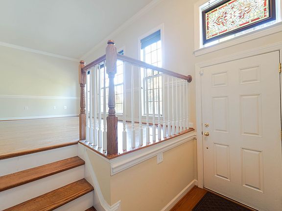 Upstairs, hardwood continues through the hallway and stairs, while the carpeted bedrooms provide a cozy retreat. The large primary suite features a tray ceiling and includes a spacious bath with a relaxing garden tub, separate shower, and dual vanities.