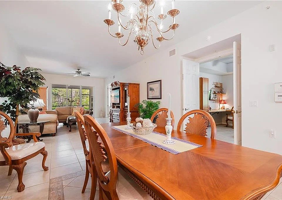 Spacious slice of paradise in a beautiful turnkey, first floor, three bedroom, two bath condo. Nestled in a 31 acre park like setting in highly desired North Naples. The unit features an expansive great room, tile floors and plantation shutters. The kitchen is well appointed with modern appliances and features ample counter space, an eat in area and breakfast bar. The master bedroom is spacious and features a large walk in closet and a master bath with double sinks and a jetted soaker tub. The third bedroom is currently used as an office but has a pull out sofa. There is a detached garage and additional parking on pavers in front of the garage. The lanai is the perfect entertainment location with plenty of room and a summer kitchen with preserve views. The community is small with 90 units spread over 31 acres. The pool offers a spacious deck and clubhouse for entertaining. This condo offers an ideal combination of luxury and convenience against a nature preserve backdrop.