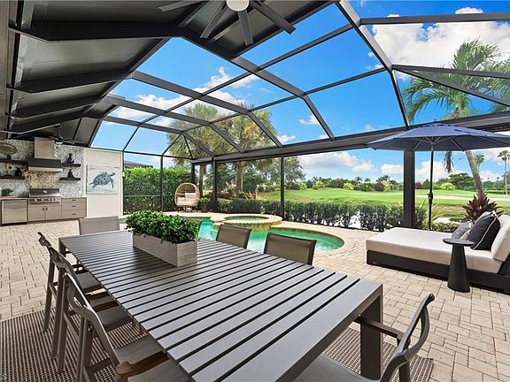 Who said you can’t have it all? Every element of this home has been masterfully redesigned with an emphasis on craftsmanship, functionality, and style, resulting in a truly one-of-a-kind living experience. Perfectly situated on a South-facing lot, enjoy abundant natural light, total privacy, and breathtaking views of the golf course and lake. The expanded 1,100+ sq. foot pool deck offers the ultimate outdoor Florida retreat, featuring a new outdoor kitchen with appliances, motorized privacy screens, a custom fireplace wall, accent lighting, and lush landscaping. Inside, every detail has been thoughtfully reimagined with raised ceilings, striking accent walls, all new lighting, all new paint, designer wallpaper, luxury vinyl plank flooring, and a fully renovated kitchen with custom cabinetry, premium appliances, and designer fixtures. Bathrooms showcase new vanities, tile, and high-end finishes, while the laundry room has been completely updated with new cabinetry and appliances. Additional upgrades include a new roof, hurricane-impact windows and shutters, new A/C, new pool equipment, new water heater, and a finished garage with upgraded epoxy flooring and lighting. Outfitted with high-end furnishings and décor from Uttermost, Gabby, Bernhardt, Theodore Alexander, Sagebrook Home, and Currey Lighting, this home offers an effortless move-in experience with unmatched style, comfort, and convenience. As a resident of Palmira, you will enjoy access to world-class amenities at the Renaissance Center Club, including a heated lagoon-style swimming pool, a 75 ft. Olympic lap pool, and a state-of-the-art fitness center. The club also features a restaurant open to all residents, a variety of fitness classes, 8 lighted tennis courts, 5 bocce and 4 pickleball courts, and a spacious dog park. A full calendar of social events fosters a vibrant and active lifestyle, while Palmira’s beautifully landscaped grounds, lakes, rolling fairways, and 27-hole championship golf course provide a serene backdrop for this extraordinary home and community. Schedule your private tour today, and experience this incredible offering in-person.
